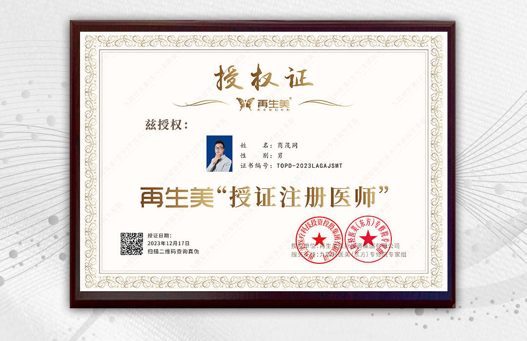 商茂同的执业生涯中获得了很多成就九院轻医美专修院认证医师,再生美授证注册医师,星颜塑授证注册医师,星颜十三线吉轻奢美学医师。
