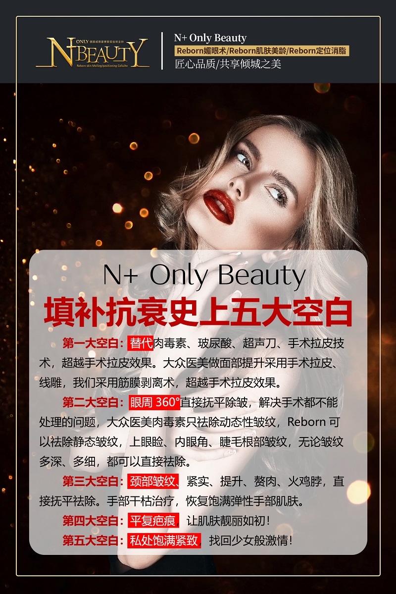 “N+唯美水剥离”细胞再生领导品牌自2012年诞生以来,高瞻远瞩,目光锁定先进的细胞再生医学领域,与世界一流同步,引领行业项目的发展方向,成为行业的风向标。核心成员均来自海外归国知名医疗服务公司和国内资深医美品牌运营团队,具备丰富的技术、运营、营销、渠道开发经验。